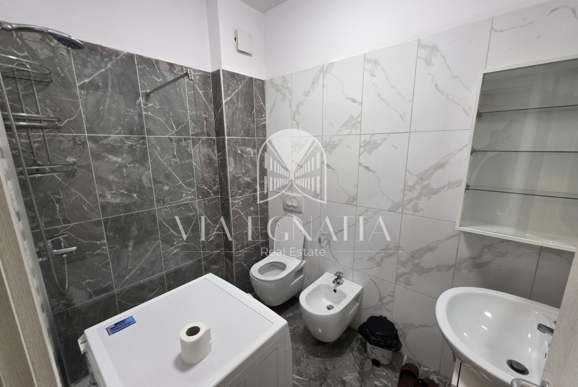 Apartament 1+1 i pozicionuar në një nga zonat më të kërkuara të qytetit, pranë çdo shërbimi dhe facilitete urbane. Ndodhet në katin e 6 dhe ofron mobilim bashkëkohor, i pajisur plotësisht me elektroshtepiake (lavastovilje, lavatriçe, tharëse rrobash etj.). Jepet me qira vetëm për periudhë afatgjatë.